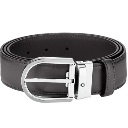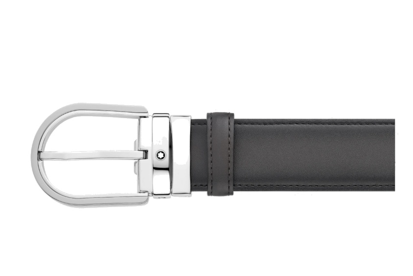 Кожаный ремень с пряжкой в форме подковы серого цвета 35 мм от магазина премиальных ручек Premium Pens в Нижнем Тагиле.